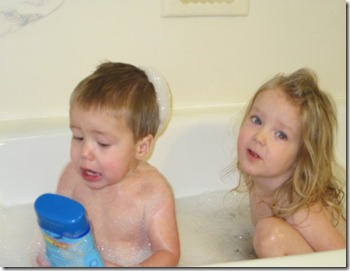 The kids get a lot of pictures taken of them at dinner time (I’m already taking pictures of the food for my gluten free blog). They’re pretty used to it. Logan is especially good at cheesing it when he sees the camera come out…